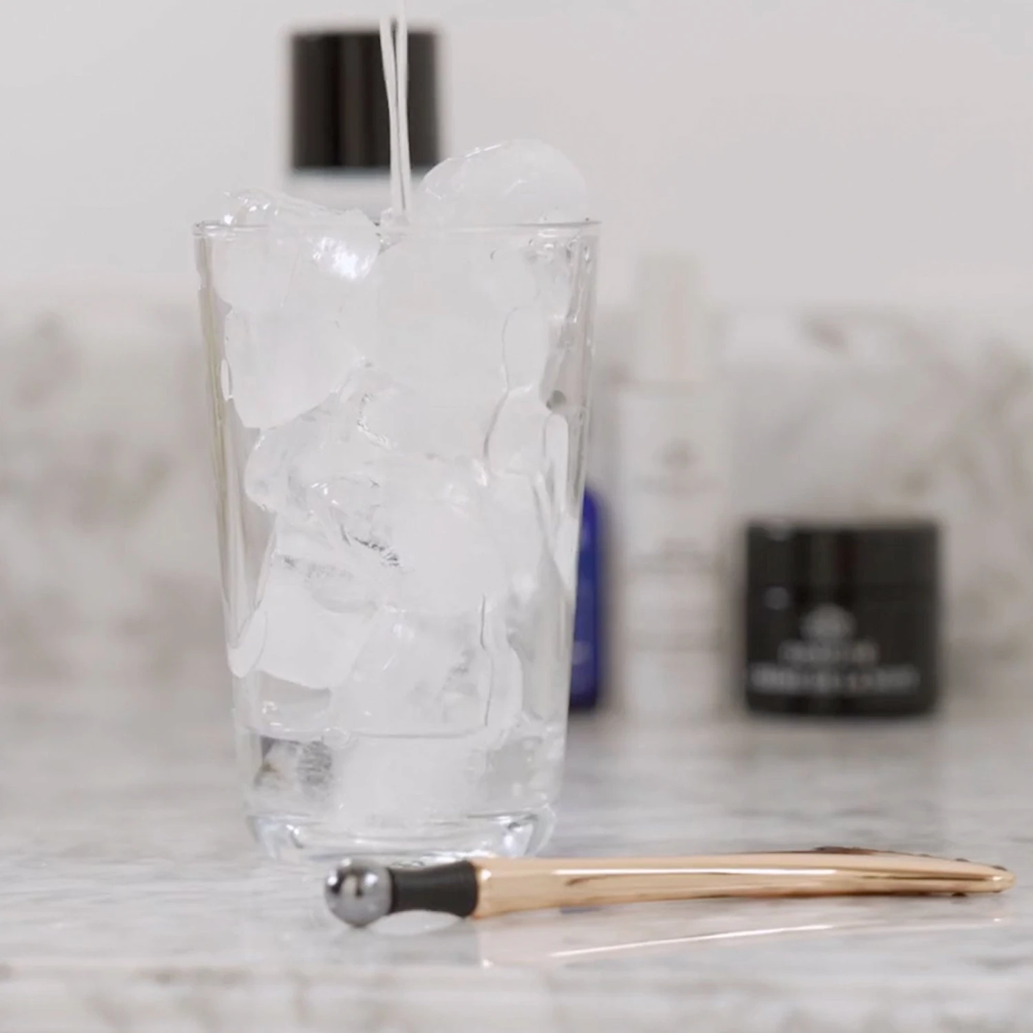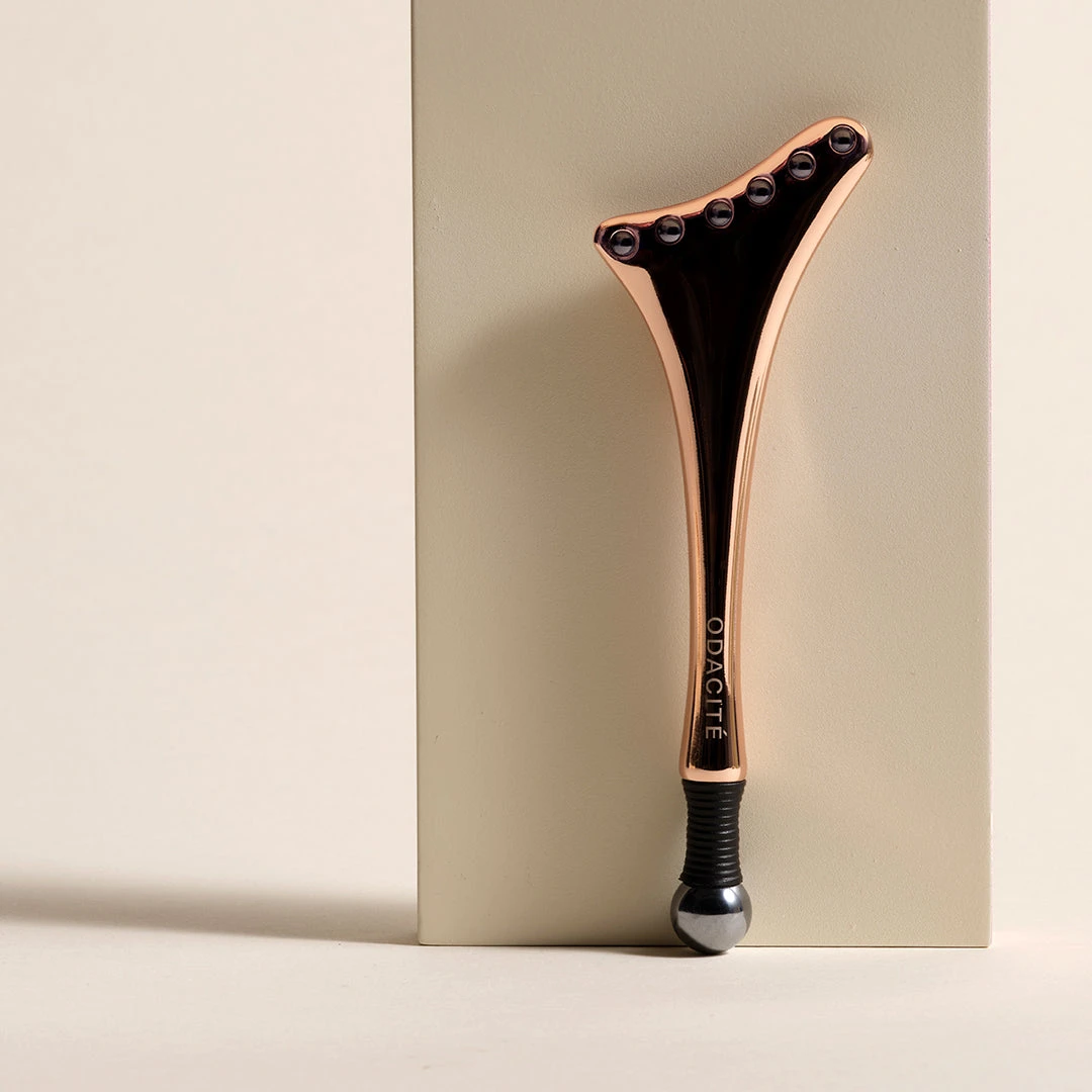 Un outil de pointe, activé au Terahertz, qui offre au visage un massage cumulant les bénéfices de la cryothérapie, de l’acupression et de l’utilisation d’un gua sha.